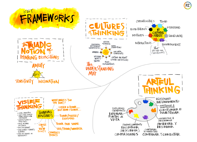 Jednym z ważniejszych obszarów tej metody jest VISIBLE THINKING – nauczyciele powinni dążyć do tego, aby widzieć myślenie uczniów. W tym celu stworzono rutyny myślenia krytycznego – kilkadziesiąt wizualnych, aktywizujących metod dla Uczniów, dzięki którym mogą szybciej, efektywnie myśleć. Nasza szkoła w tej chwili stosuje już ponad 30 takich rutyn, a w kolejnych latach będziemy otrzymywać jeszcze więcej, wszystko po to, aby wzbogacić myślenie Uczniów na lekcji.