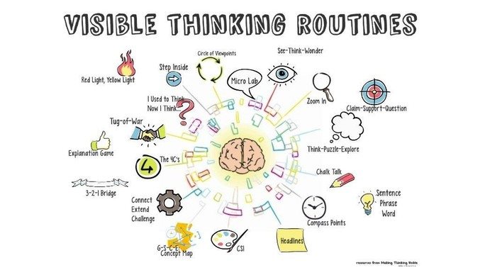 Jednym z ważniejszych obszarów tej metody jest VISIBLE THINKING – nauczyciele powinni dążyć do tego, aby widzieć myślenie uczniów. W tym celu stworzono rutyny myślenia krytycznego – kilkadziesiąt wizualnych, aktywizujących metod dla dzieci, dzięki którym mogą szybciej, efektywnie myśleć. Nasza szkoła w tej chwili stosuje już ponad 20 takich rutyn, a w kolejnych latach będziemy otrzymywać jeszcze więcej, wszystko po to, aby wzbogacić myślenie uczniów na lekcji.